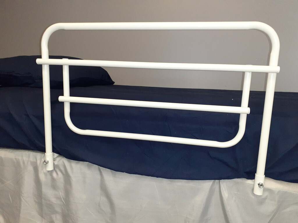 This 30” Security bed rails is for adults and ideal for those who need full protection from falling out of bed. It can be lowered by pushing in the snap buttons at the bottom of the rail by a caregiver. These Security bed rails have steel construction for strength, and are coated a neutral off-white to fit any decor.